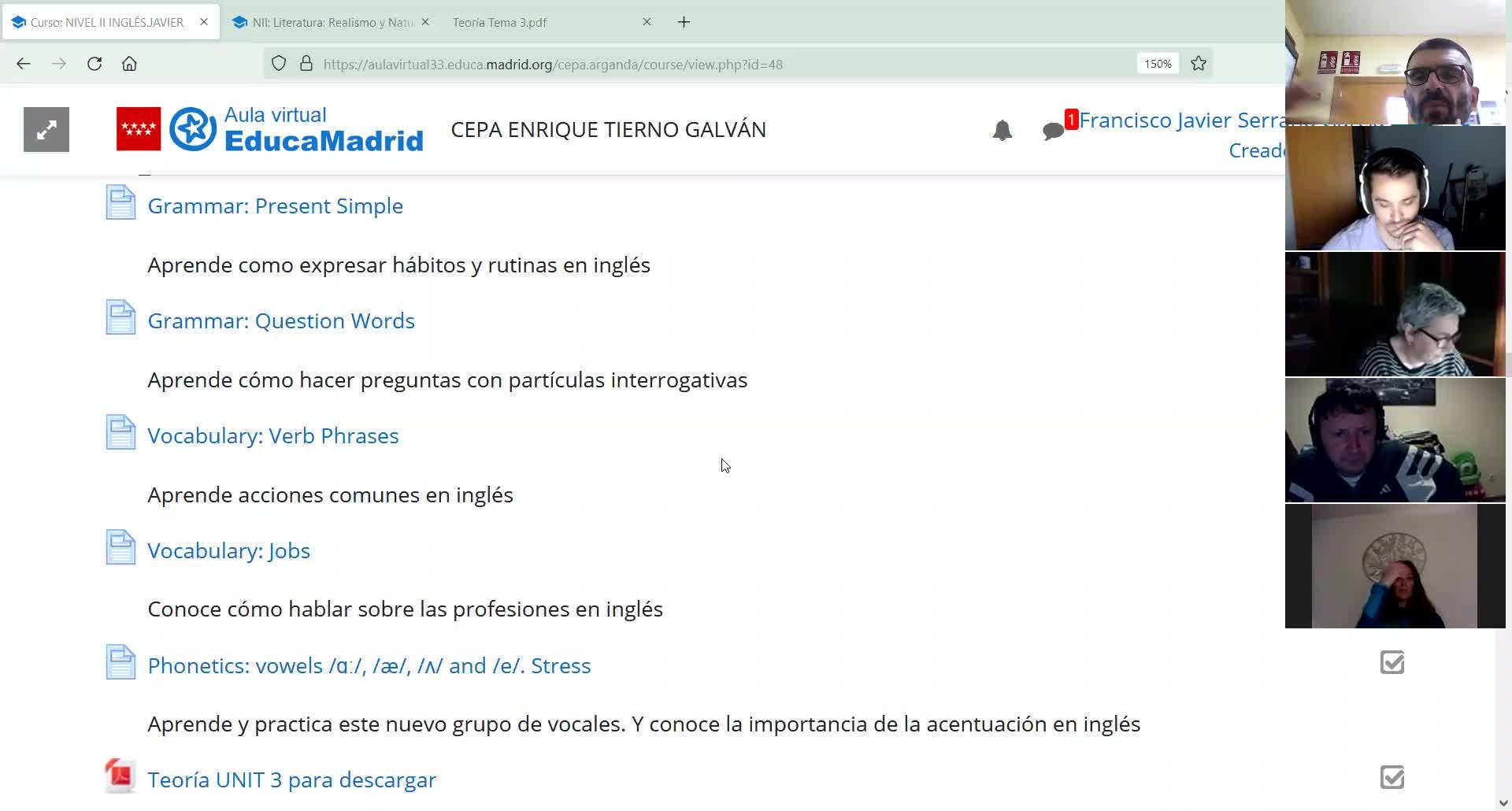 Decía que este apartado, que es el de verb phrases, viene bien para completar lo que estuvimos hablando la semana pasada, o la sesión anterior, del present simple.