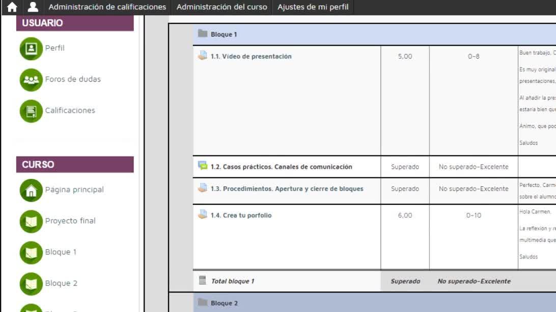 En este caso, vamos a ver las actividades del bloque 1 que han sido terminadas