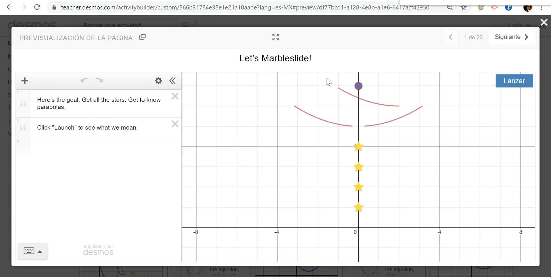 Desmos: Actividades con canicas (marbleslides)