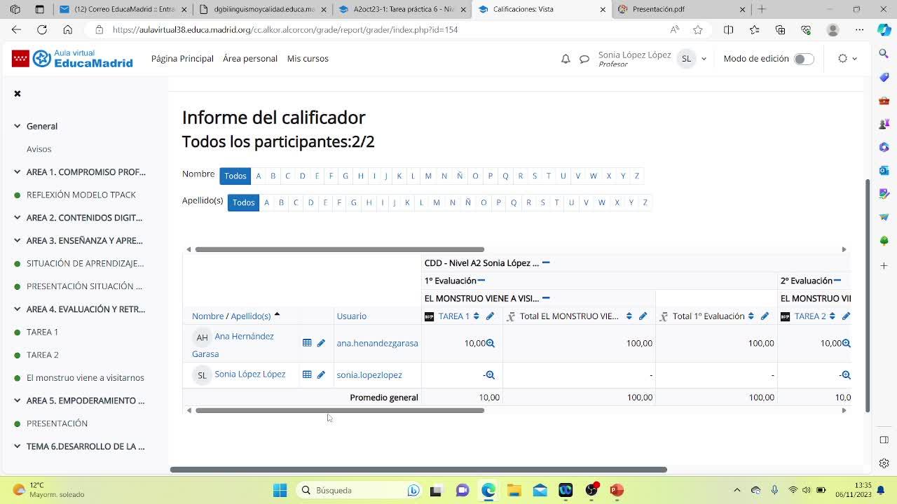 por medio de actividades, tanto en la primera evaluación,