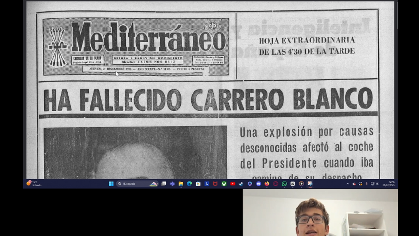 Bueno, esta primera noticia nos habla sobre el asesinato de Carrero Blanco el 20 de diciembre de 1973 a manos del grupo terrorista ETO.