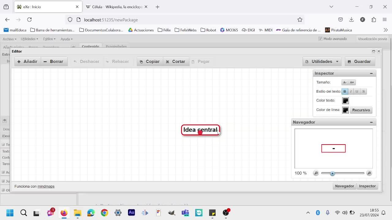 Bueno, lo primero que tenemos es el iDevice, que ese es muy sencillo para escribir texto, incluso le podemos poner audio o vídeo, nos da todas las posibilidades, distintos tipos de color, nos permite pegar, bueno, y a mí la que nos permite hacer un mapa conceptual, que la verdad que es muy interesante,