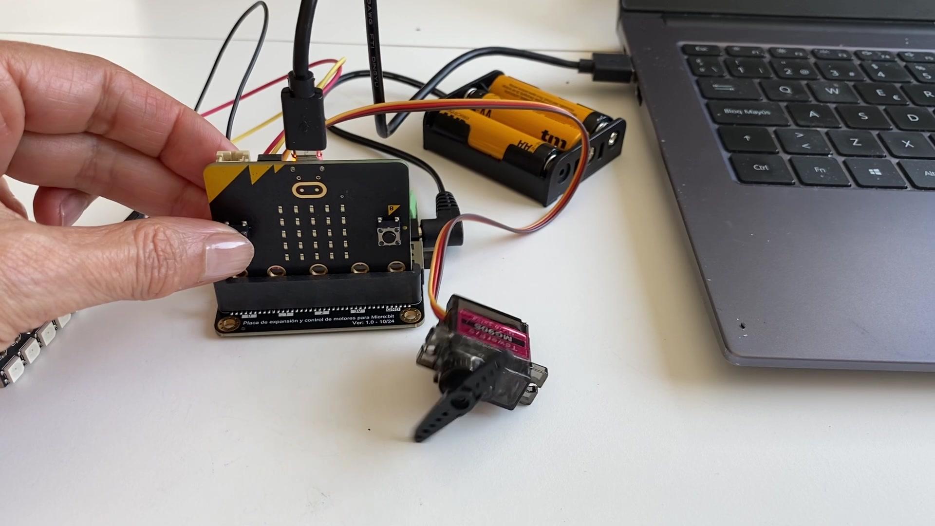 En esta práctica al apretar el pulsador A, aumenta la velocidad del servomotor