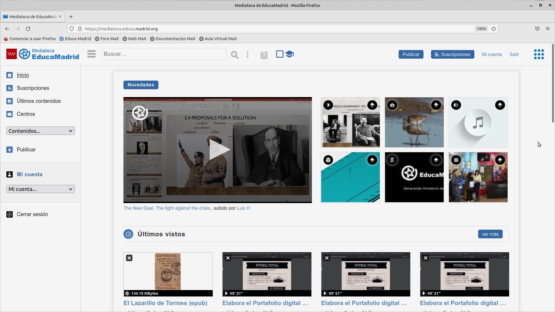 Bien, para subir un contenido a la Mediateca, habiendo entrado con nuestras credenciales