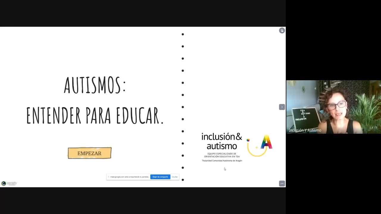 Sesión 2 del seminario de formación en Centro Preferente TGD, donde se aborda la definición de autismo, características y nee asociadas.
