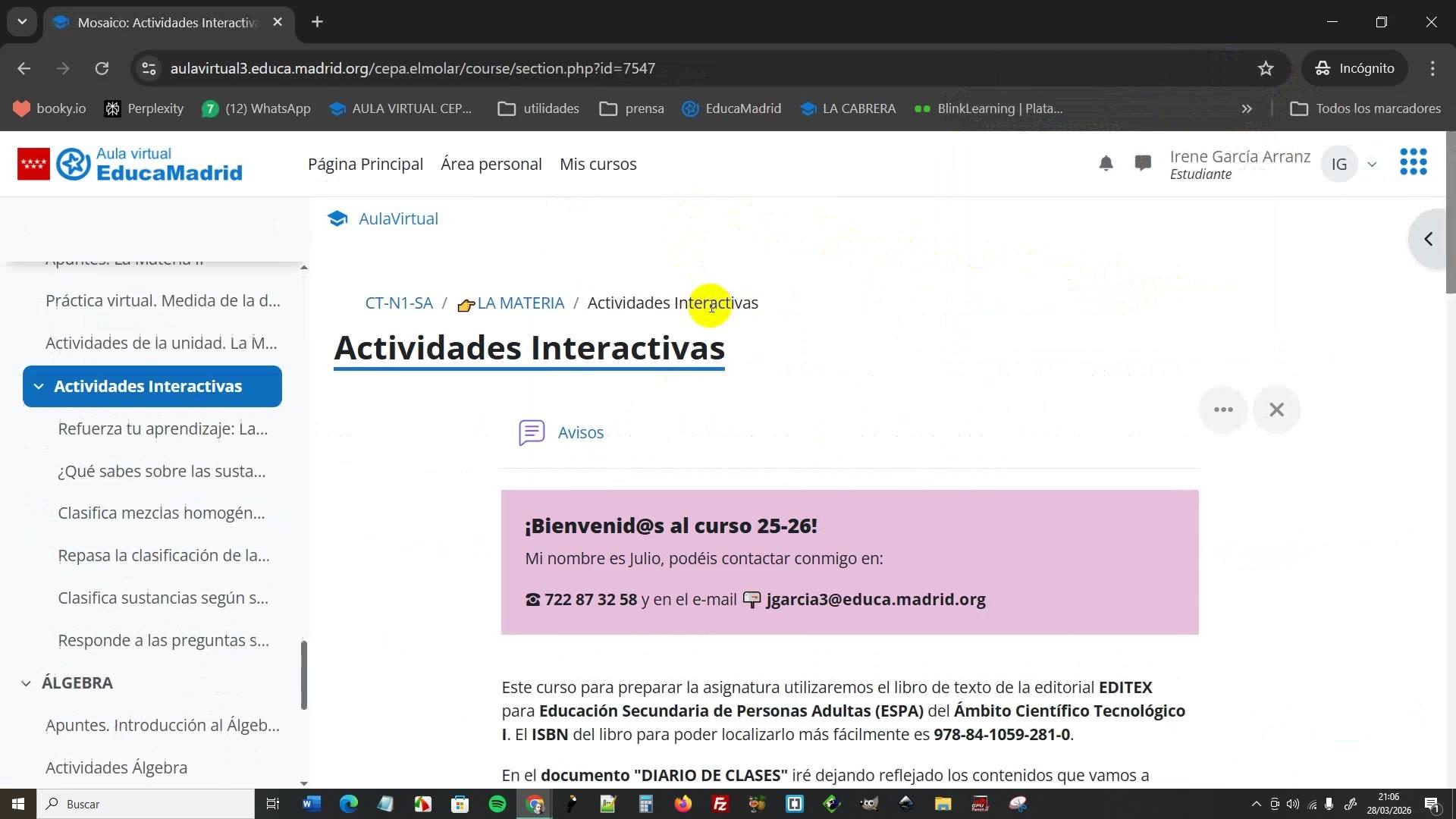 - Materias: