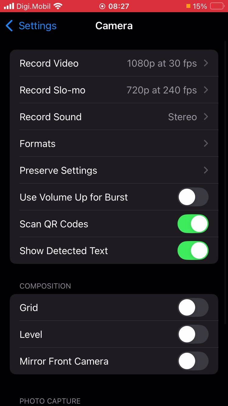 First of all, go to Settings, acceded a Ajustes, and go to Camera.