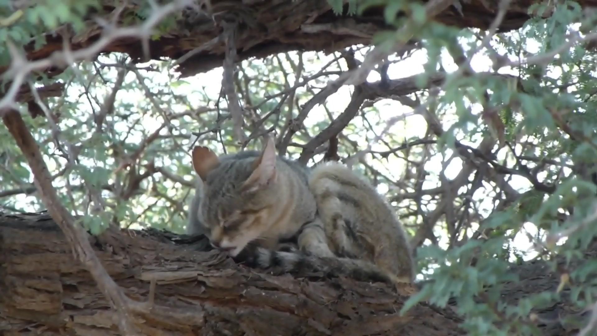Como todos los felinos, cuando no está cazando pasa gran parte del tiempo dormitando y acicalándose