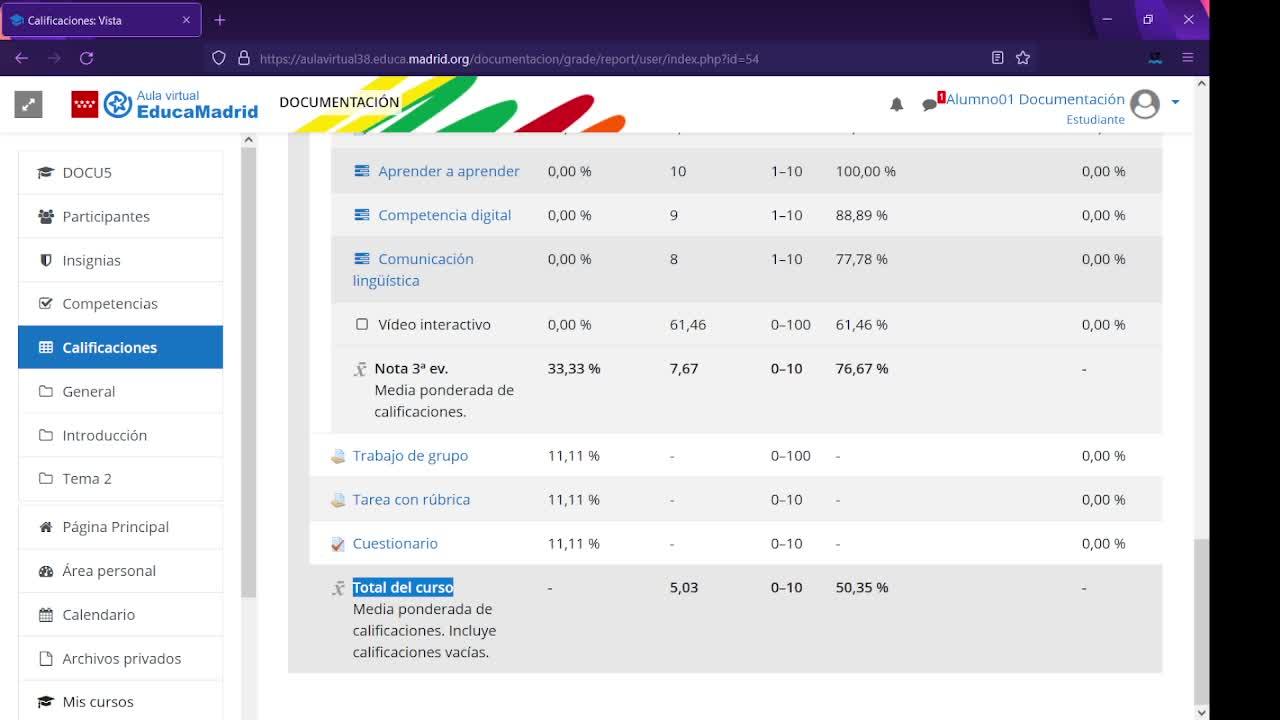 Libro de calificaciones, perfil alumno