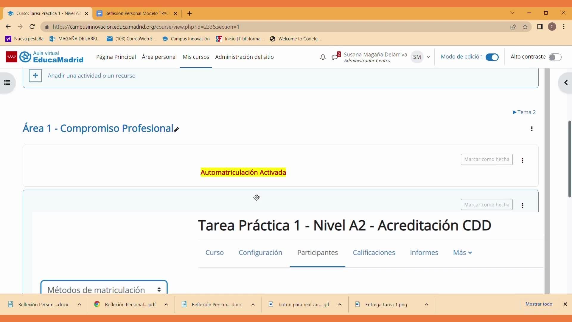 En este paso 13 vas a subir el documento que has creado al Área 1 Compromiso Profesional
