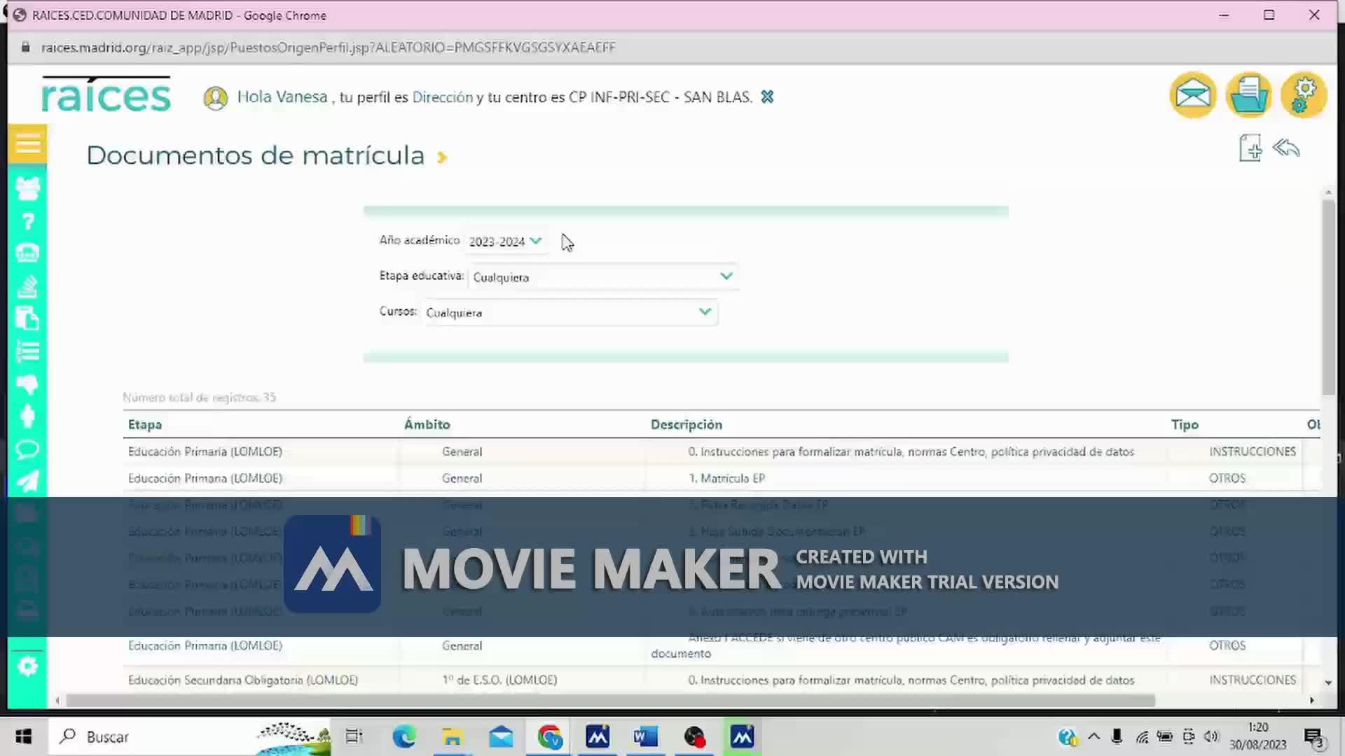 Bueno, pues en Canva en matrículas tengo los documentos que ha actualizado este curso.