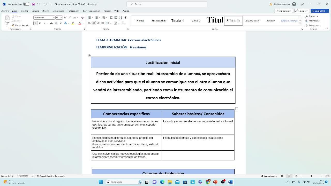 uso del correo electrónico. Tienen las competencias específicas de esta situación de aprendizaje y