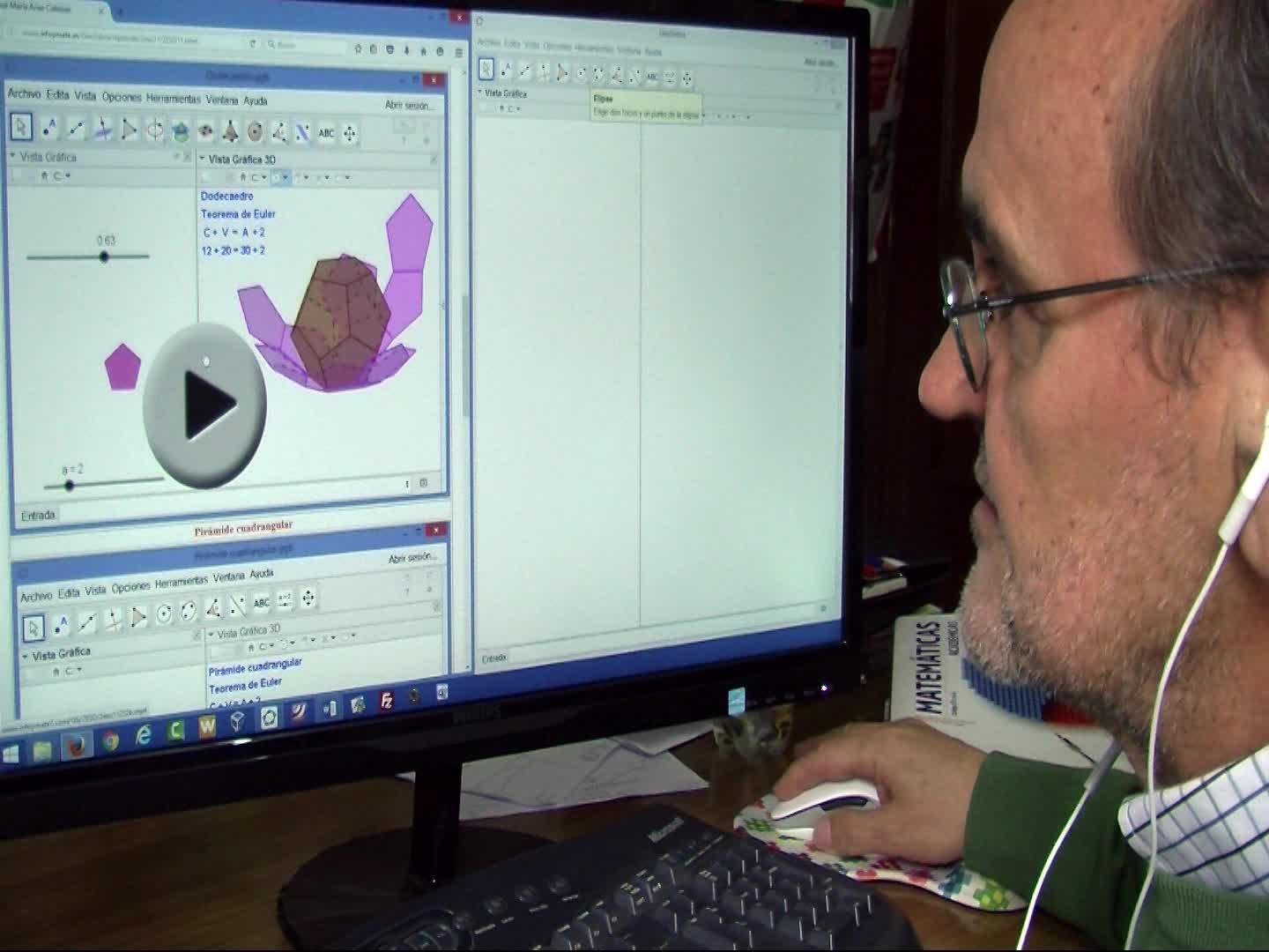 Metodolología Arias Cabezas: Ponemos en paralelo el vídeo y el Geogebra 3D y al mismo tiempo que vemos el vídeo hacemos la construcción en GeoGebra 3D