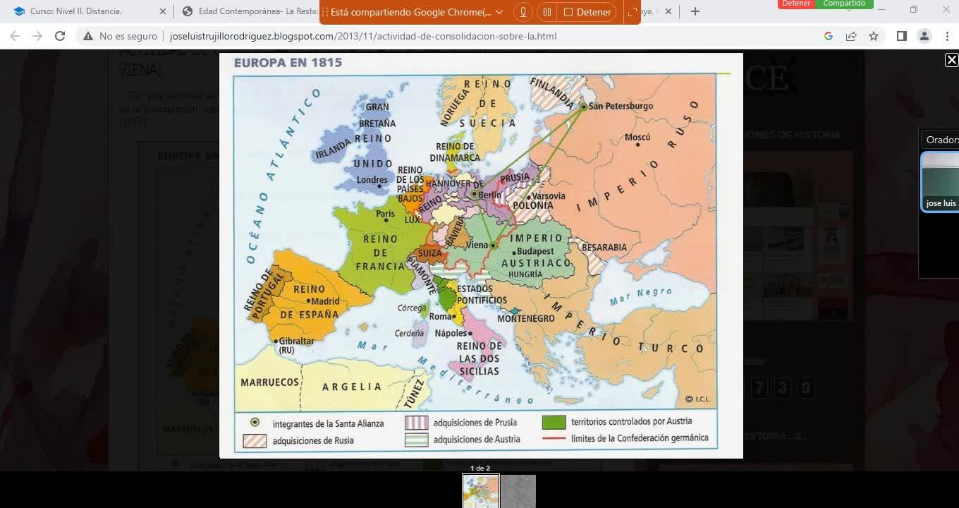 Bueno, aquí tenéis un mapa, que tenéis también en los apuntes, que es un mapa de esa Europa de 1815.