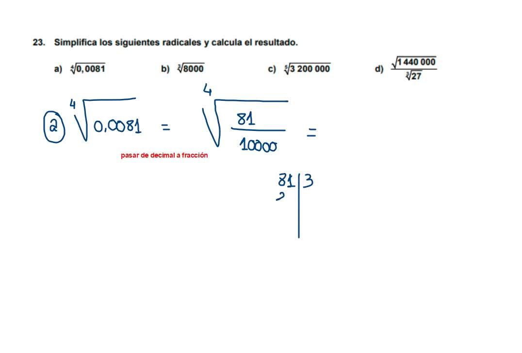 Vamos a hacer el ejercicio 23 que dice simplificar los siguientes radios para calcular el resultado.