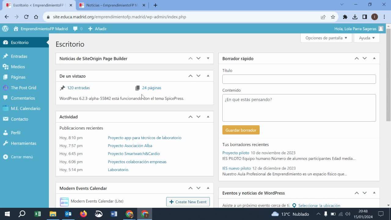 Cómo publicar una noticia en el wordpress de emprendimiento - Contenido educativo