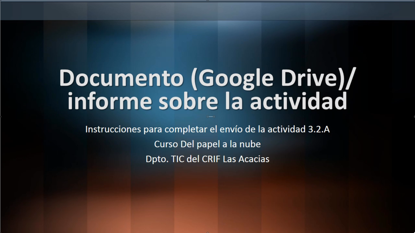 AYUDA Actividad 3.2.A Instrucciones para redactar el informe-resumen del desarrollo de la actividad Curso del Aula Virtual Del papel a la nube Dpto. TIC del CRIF Las Acacias