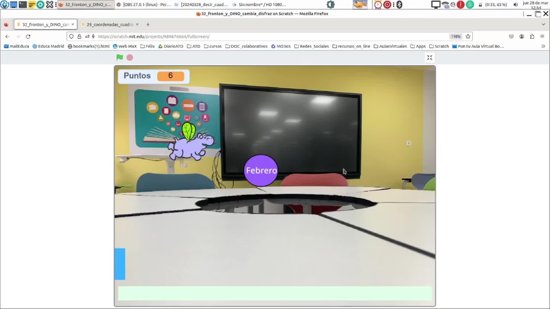 Hola, buenos días. Pues vamos a presentar una pequeñita actividad. Bueno, con Scratch, pues una de las cosas que más se hacen es el frontón.