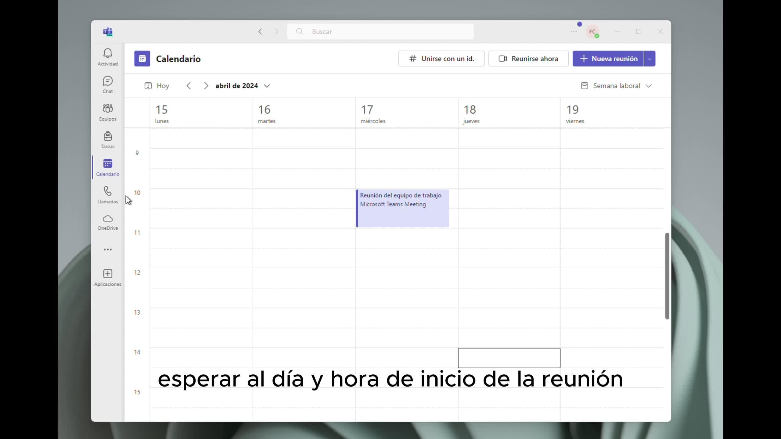 Ahora que ya tenemos la reunión creada, vamos a acceder a ella. No sería necesario esperar al día y hora de inicio de la reunión, en cualquier momento podemos hacer clic sobre el enlace del calendario y darle a unirme.