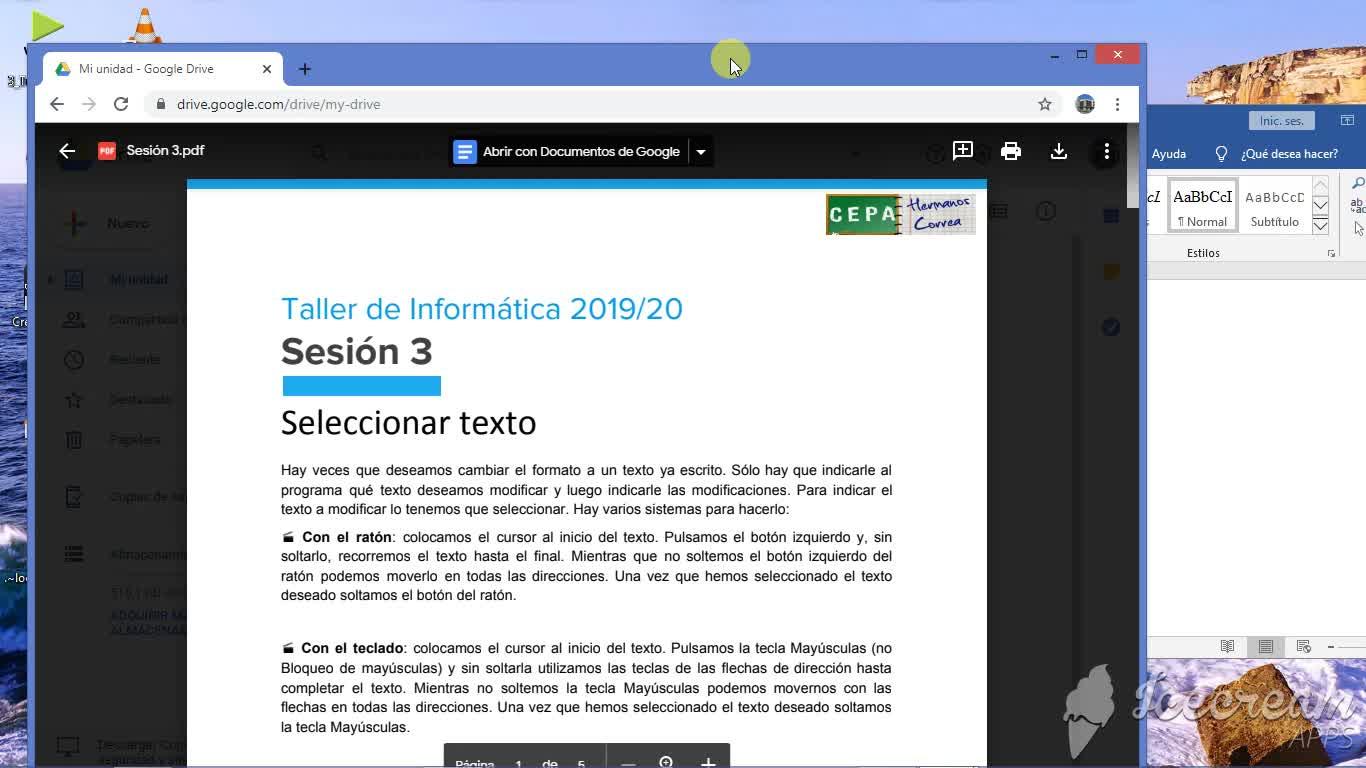 En este tutorial se explica como configurar las ventanas para poder trabajar a doble ventana con dos aplicaciones distintas abiertas, Drive y Word.