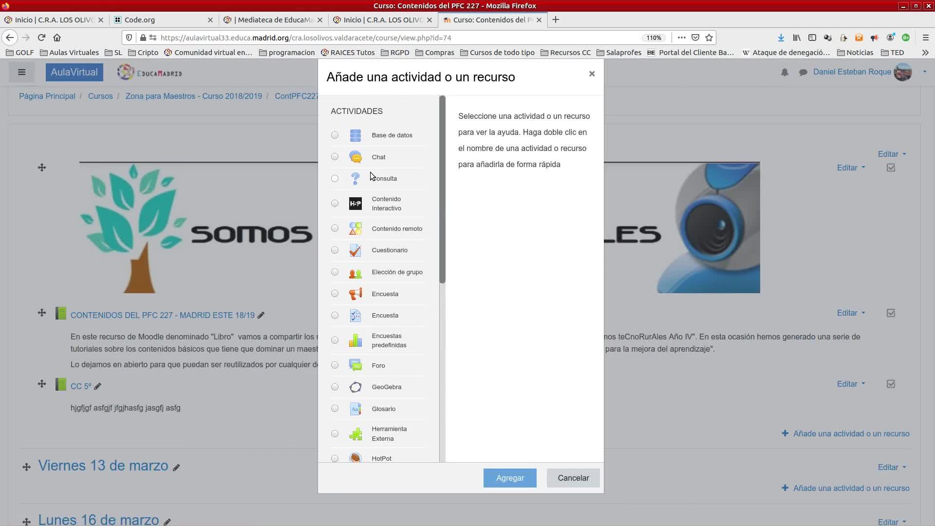vamos a añadir una actividad o recurso