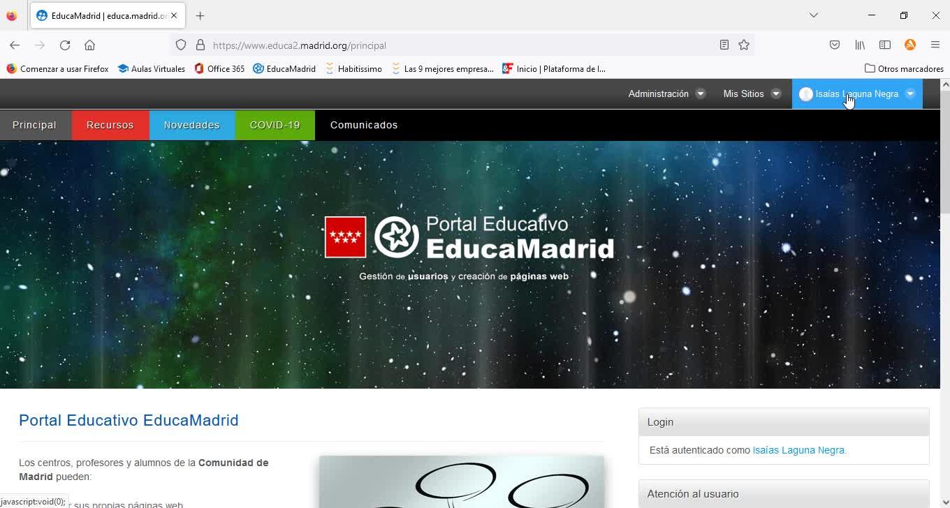 Accedemos y ingresamos en el backend de su cuenta de Educamadrid.