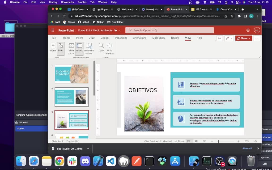 A ver, y vamos a ver la tarea realizada. He partido la situación de aprendizaje, el cambio climático que se ha presentado en la tarea 3 y bueno he realizado a través de PowerPoint donde he ido creando distintas actividades a través de un recorrido que el alumno debe de ir haciendo.