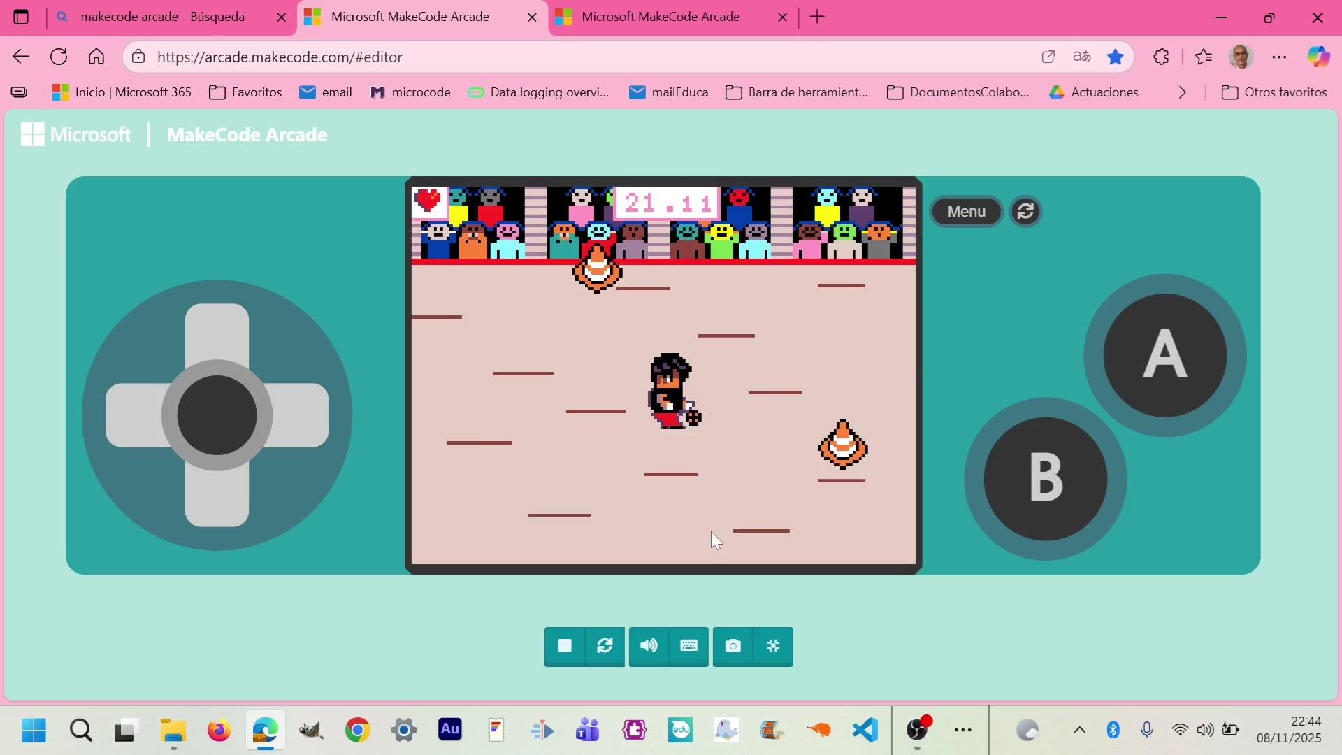 ¿Qué videotutoriales? Pues tenemos que irnos a nuestra página de MakeCode Arcade y aquí tenemos los que estamos haciendo ahora que son los básicos, este muy divertido, divertidísimo, este también y ahora estábamos con este y bueno pues seguiremos con algunos más y ya luego pues a partir de enero pues empezaremos a crear los nuestros,