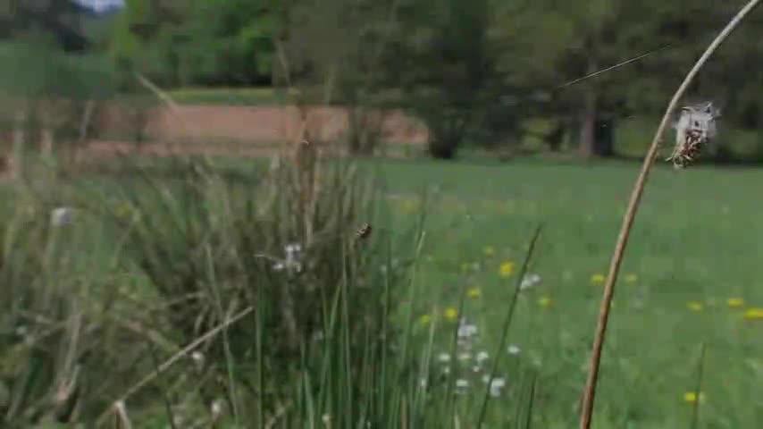 una hembra de larinioides cornutus construyendo su tela que no suele tener más de veinte radios a cámara lenta se aprecia cómo la araña maneja con las patas traseras la seda que produce con las hileras