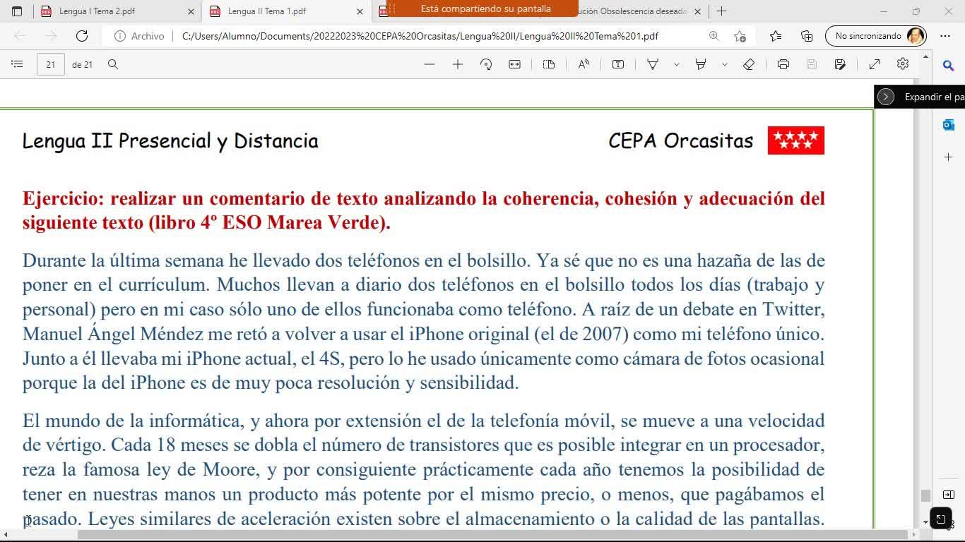 Vale, buenas tardes, esto es una clase de lengua 2 distancia, clase número 8 creo,