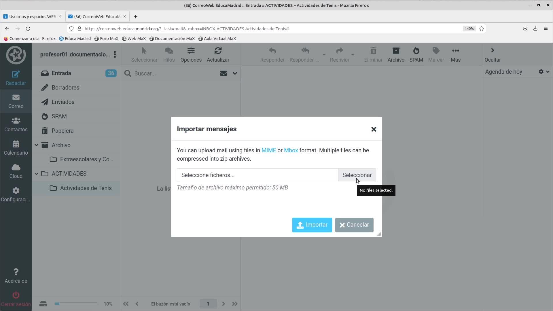 Correo EducaMadrid: Exportar e importar correos