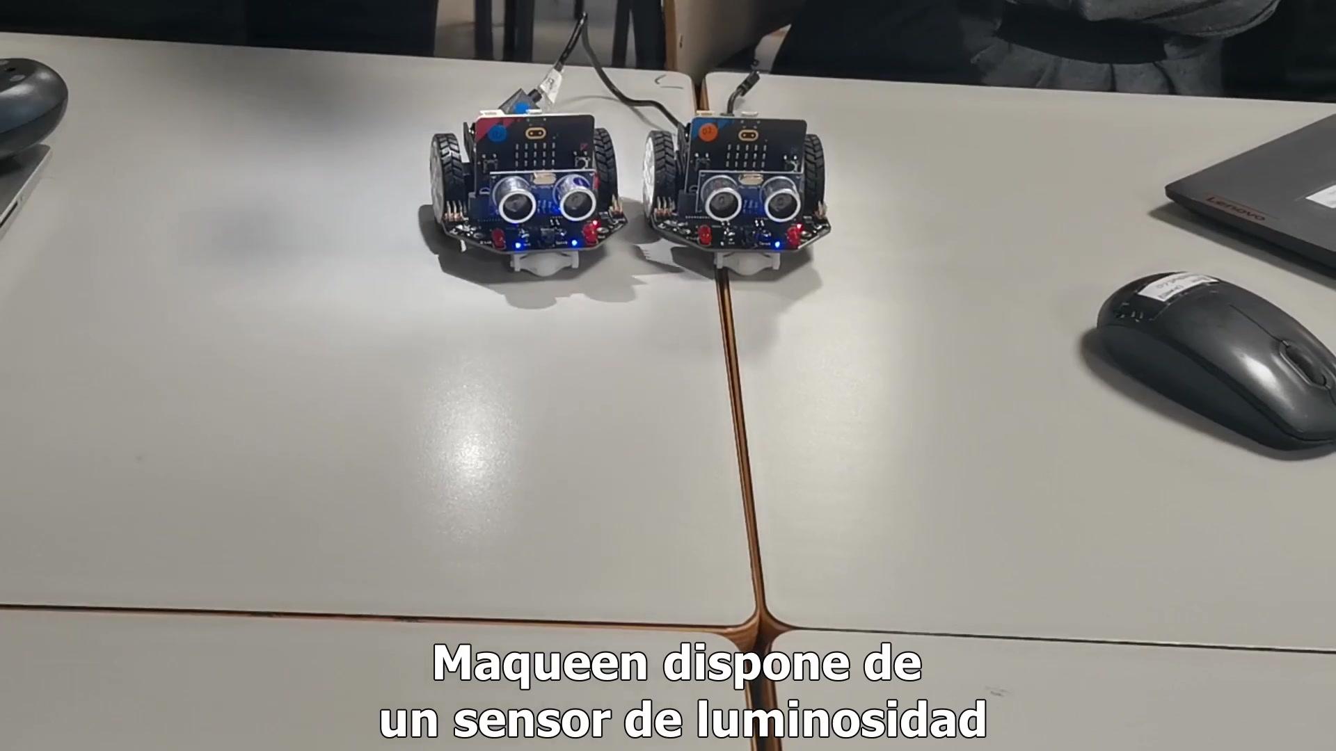 El robot Maqueen es accionado al detectar una fuente luminosa