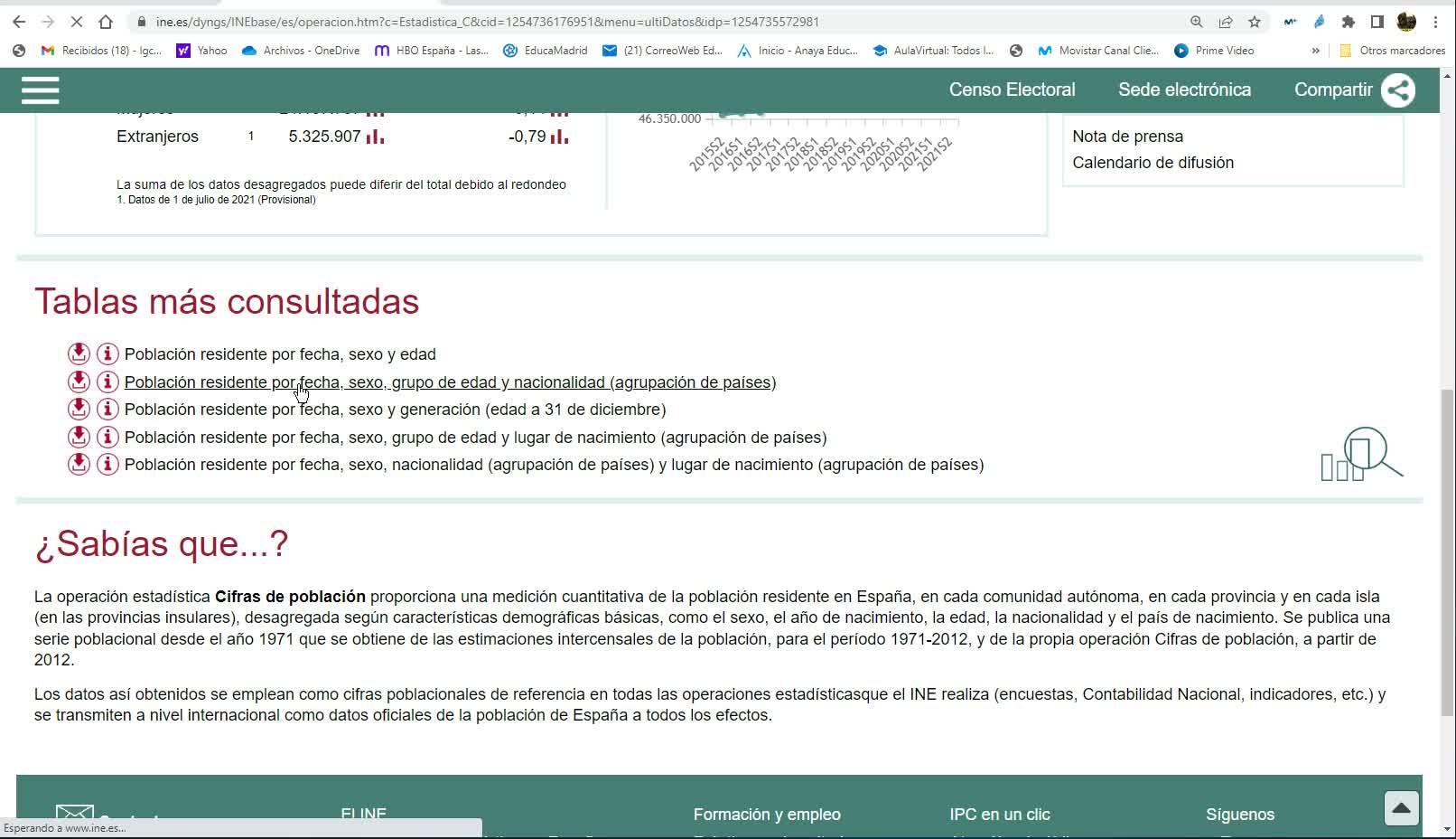 Aquí donde nos interesa para descargar los datos necesarios es en este apartado, en Demografía y Población.