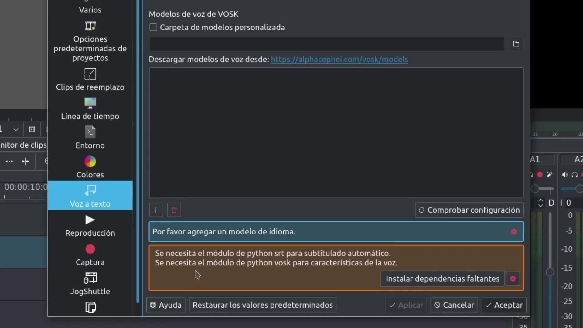 idiomas de los vídeos que queramos sustitular. Con esto ya hemos configurado Cadenlive.