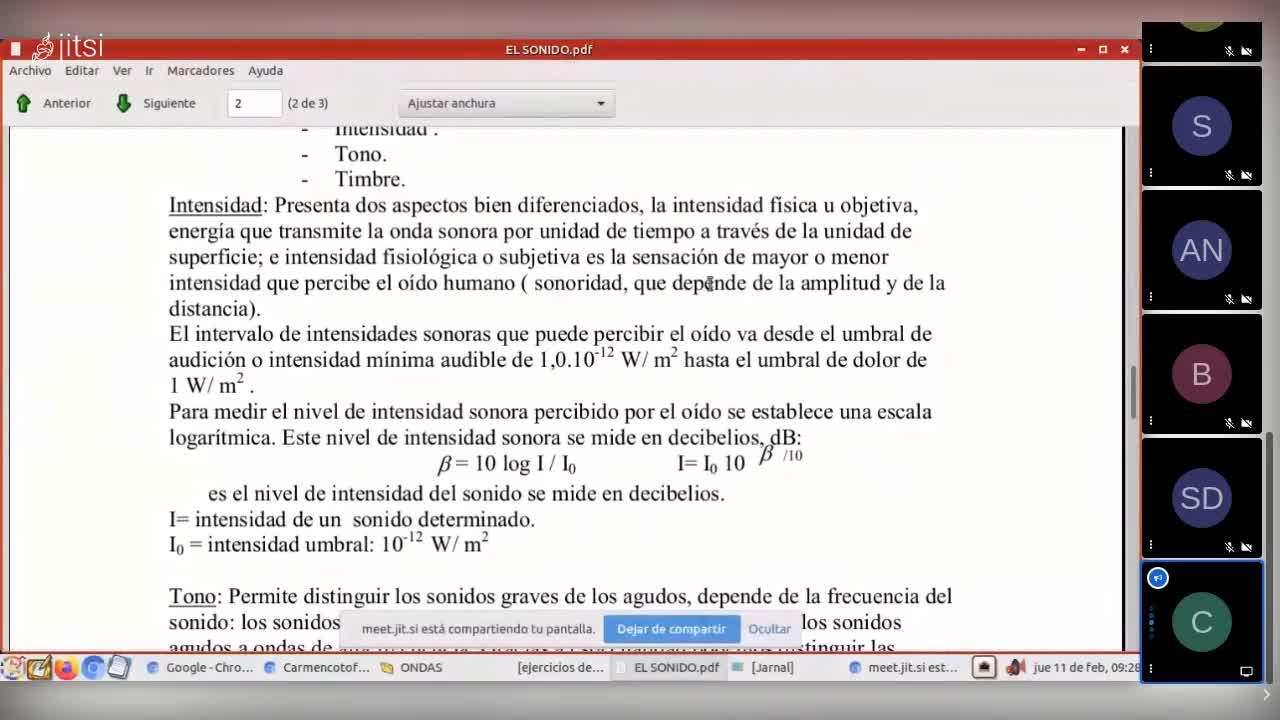 Y luego tenemos otra intensidad que es subjetiva y que realmente es como se percibe, sí, pues vista de la física. Es decir, a ver, lo que es la intensidad como potencia entre superficie, ¿de acuerdo? ¿Vale o no? A eso me refiero.