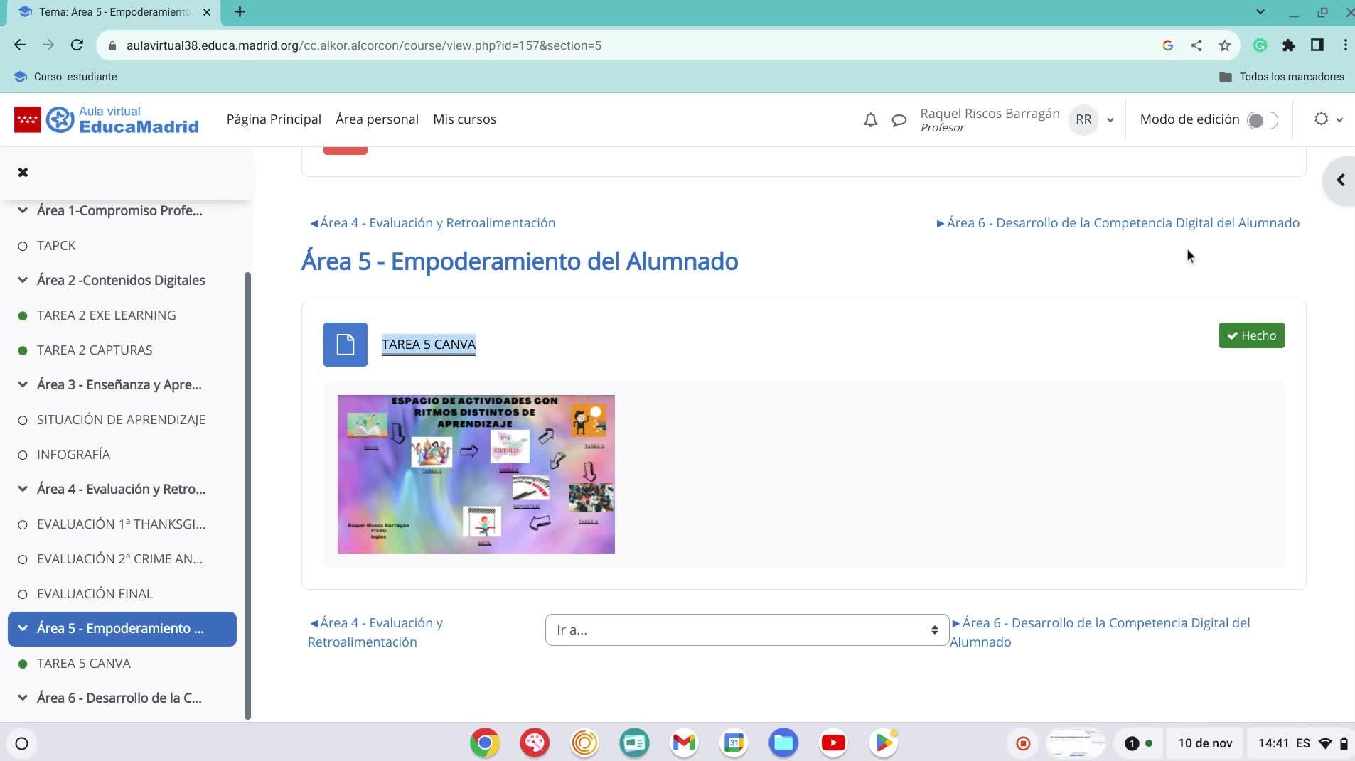 Estaba en la tarea 5, soy Raquel Risco, y estaba explicando que la tarea 5 era un diseño gráfico interactivo.