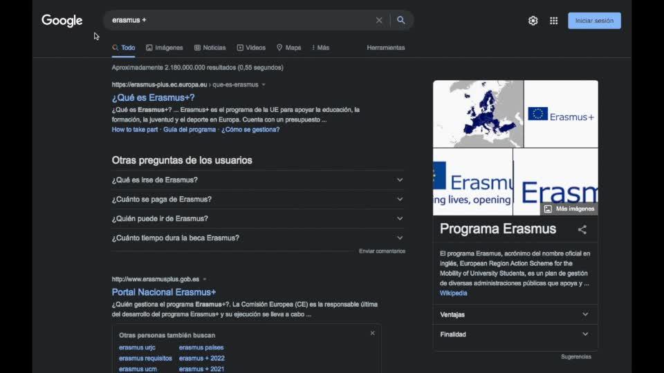 Lo primero que tenemos que hacer es, en un buscador del navegador, buscar Erasmus Plus.