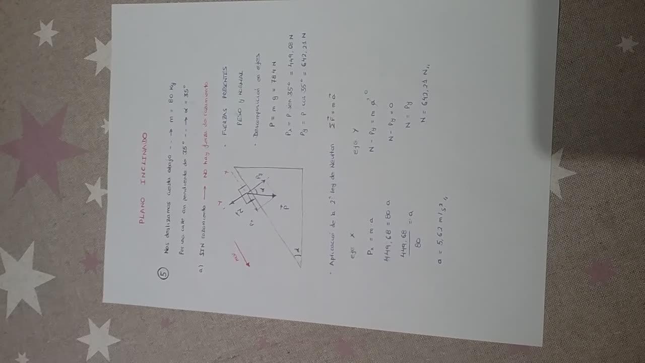 Por tanto estoy realizando un ejercicio en el plano inclinado