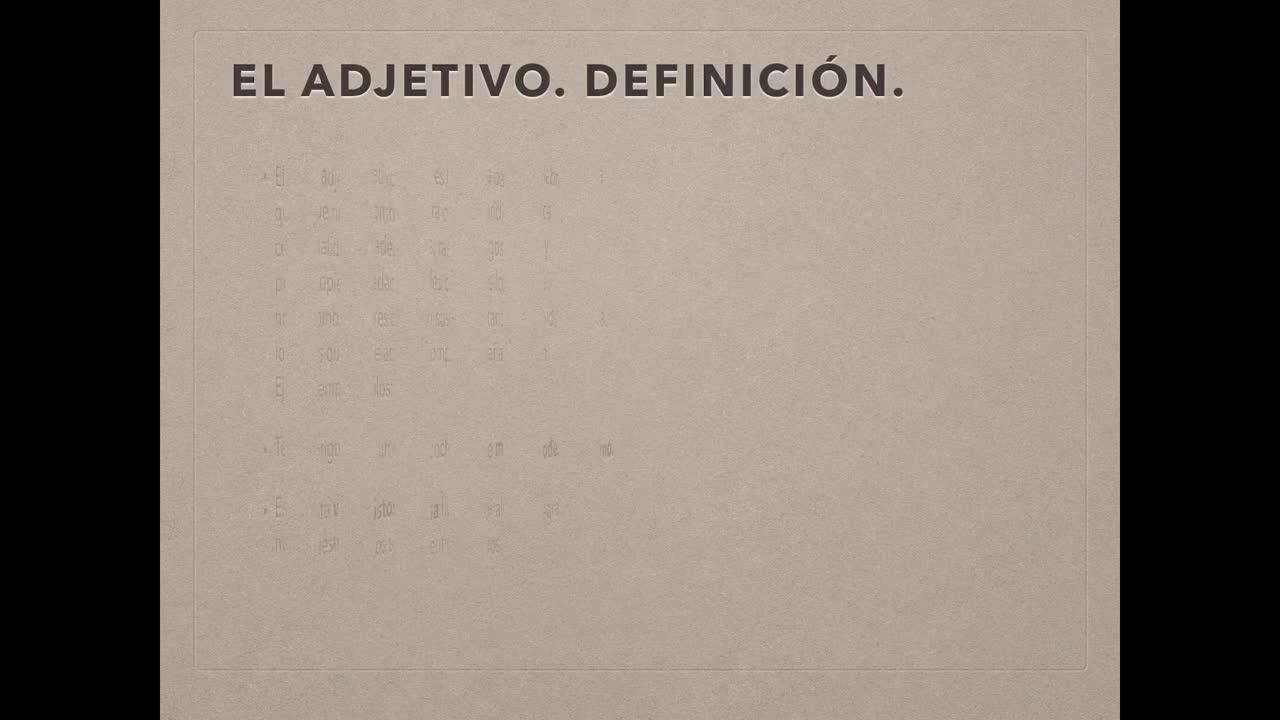 El adjetivo. Definición. El adjetivo es la palabra que nombra o indica cualidades, rasgos y propiedades de los nombres o sustantivos a los que acompañan. Ejemplos. Tengo un coche moderno. Esta vistosa flor alegra nuestros sentidos.