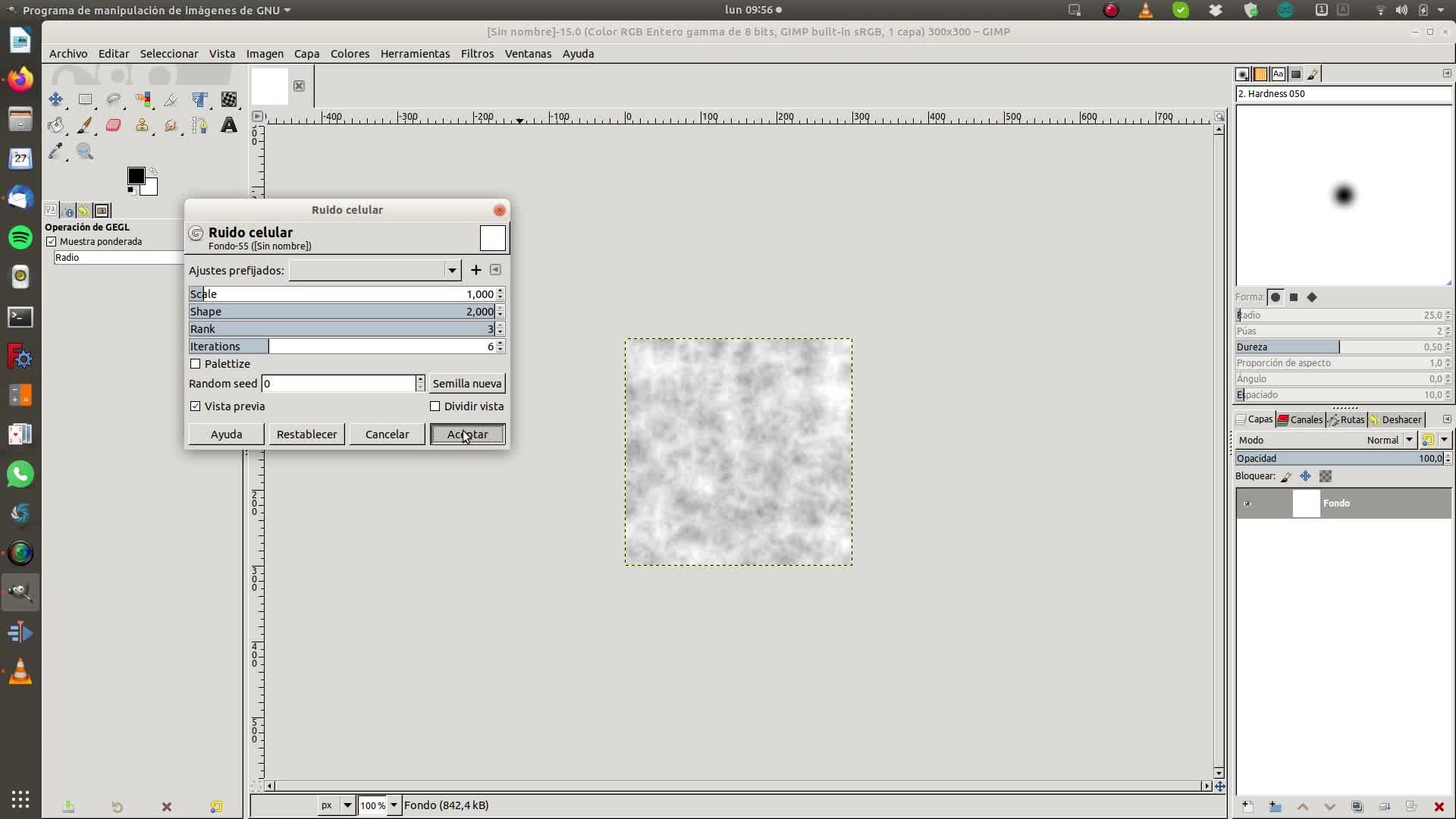 filtro de renderizado, ruido, ruido celular, por ejemplo, y vamos a variar algunos parámetros