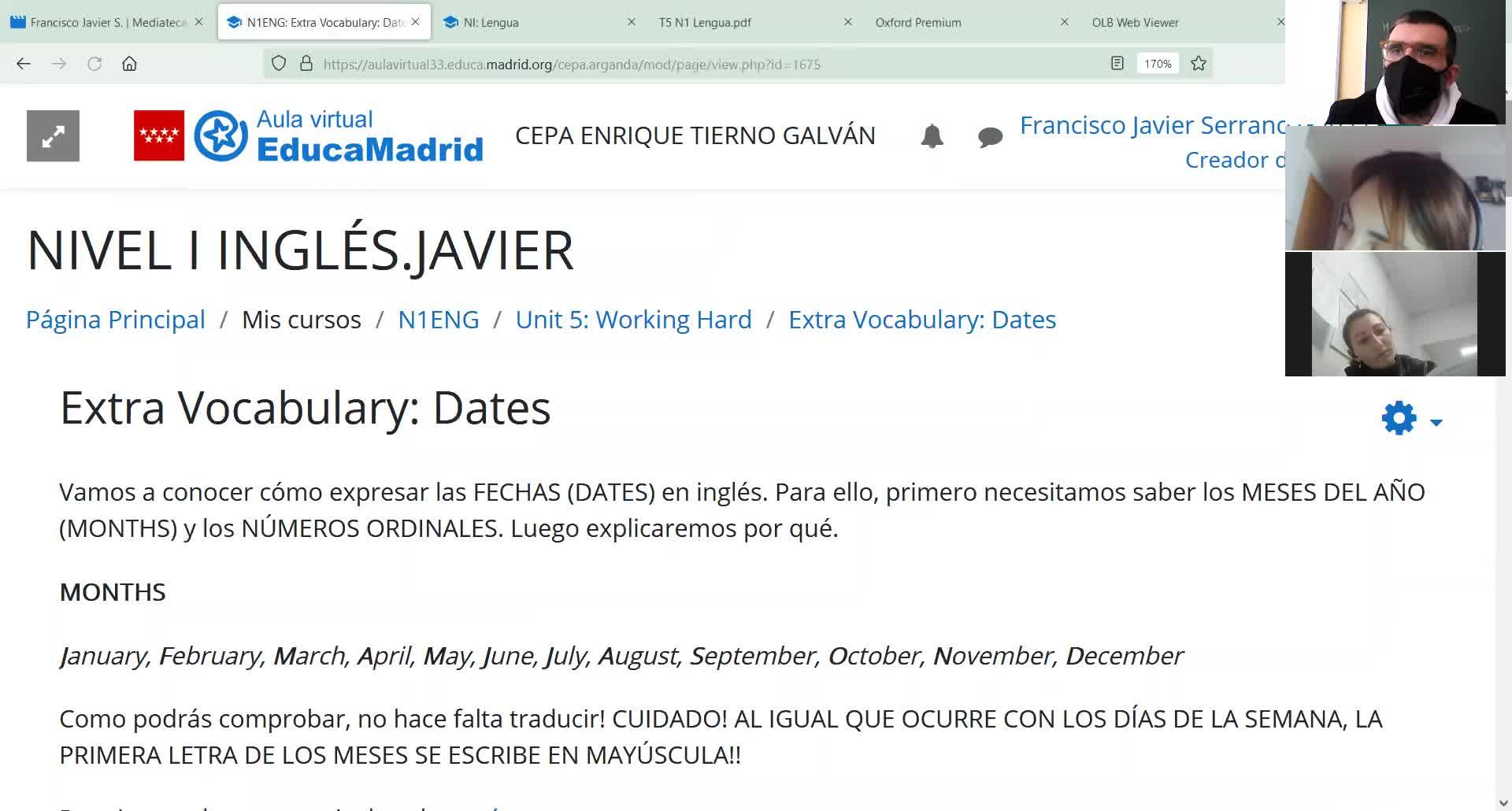 Bueno, una de las últimas cosas que vamos a estudiar en este tema son eso que estáis viendo, que estoy señalando de Extra Vocabulary Dates, las fechas, como yo en inglés expreso hablo de las fechas, ¿vale?