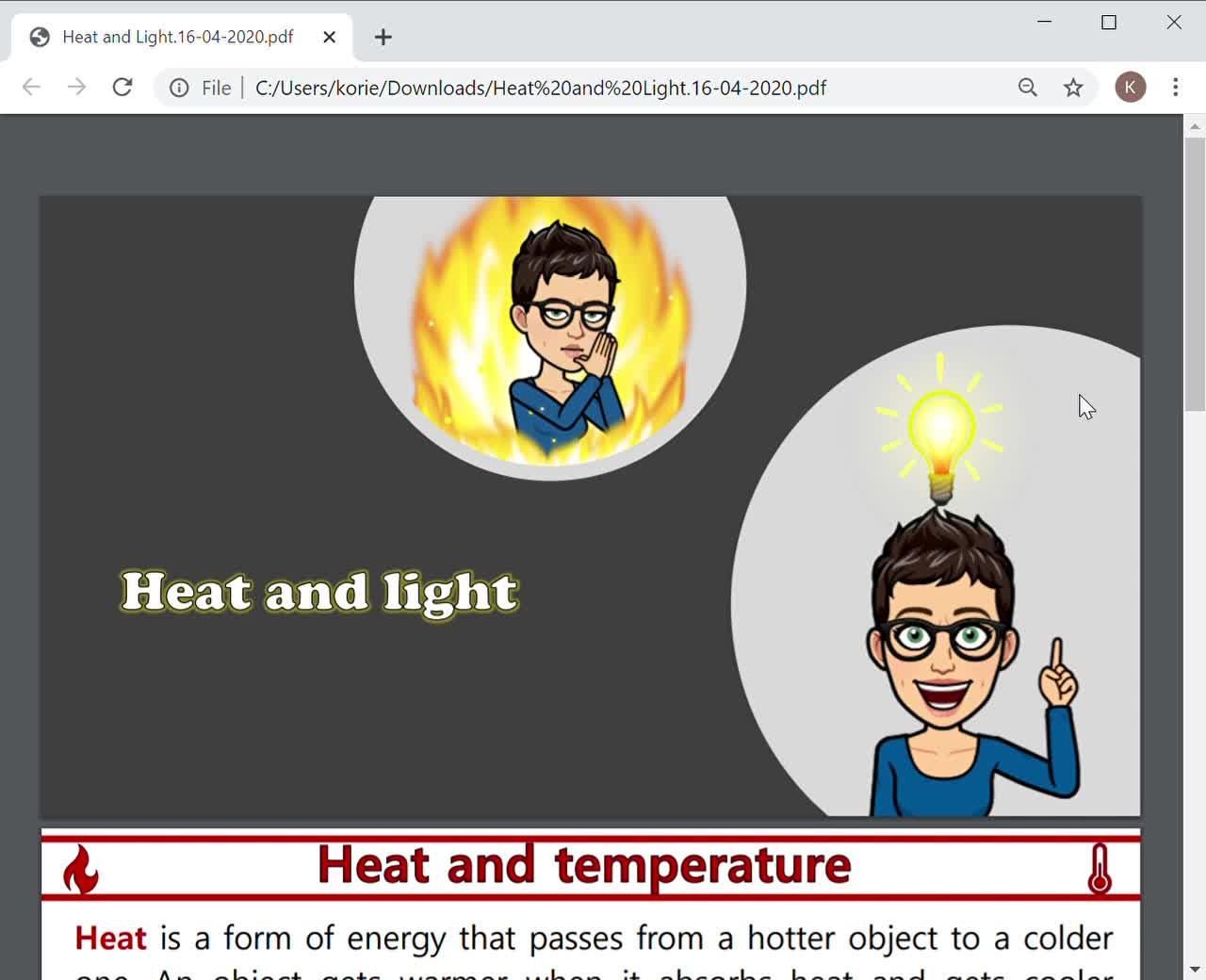 with you about heat and light. Heat is a form of energy that passes from a hotter object