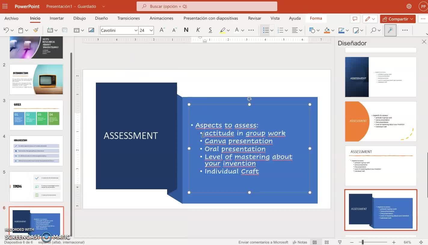 ¡Hala! Perfecto. Ya he acabado mi presentación. ¿Veis? Os la enseño entera.