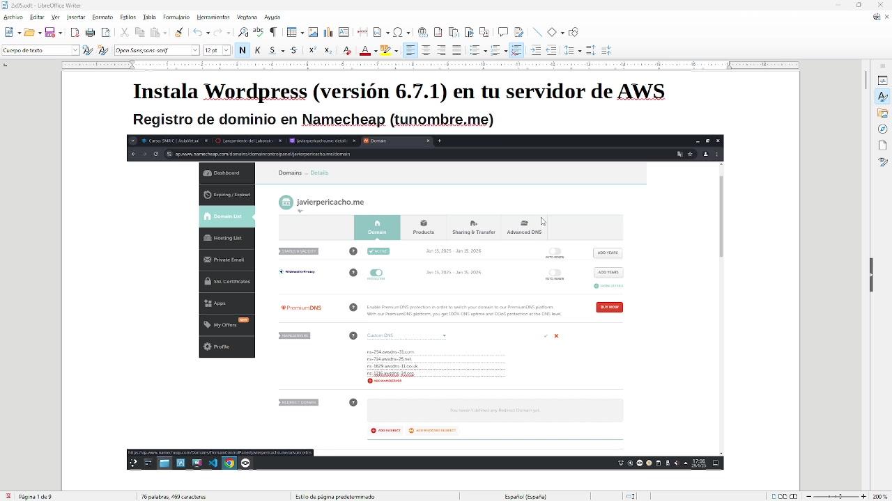 como nombre de dominio, bueno como dominio, en el servidor de AWS para que se pudiera