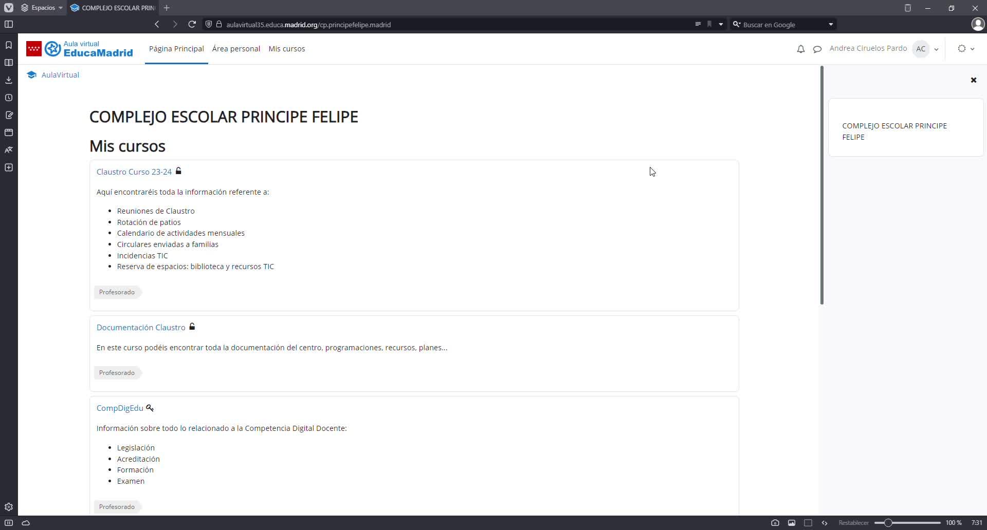 y dentro de mis cursos acceder al que pone claustro 23-24.
