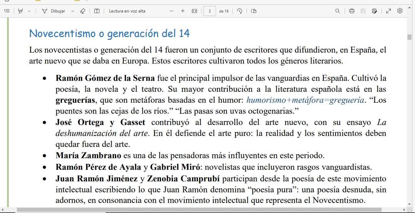 Bueno, en cuanto a la generación del 27, bueno, pues la generación del 27 es una expresión particular española de las vanguardias en nuestro entorno nacional, en nuestra lengua, en lengua española.