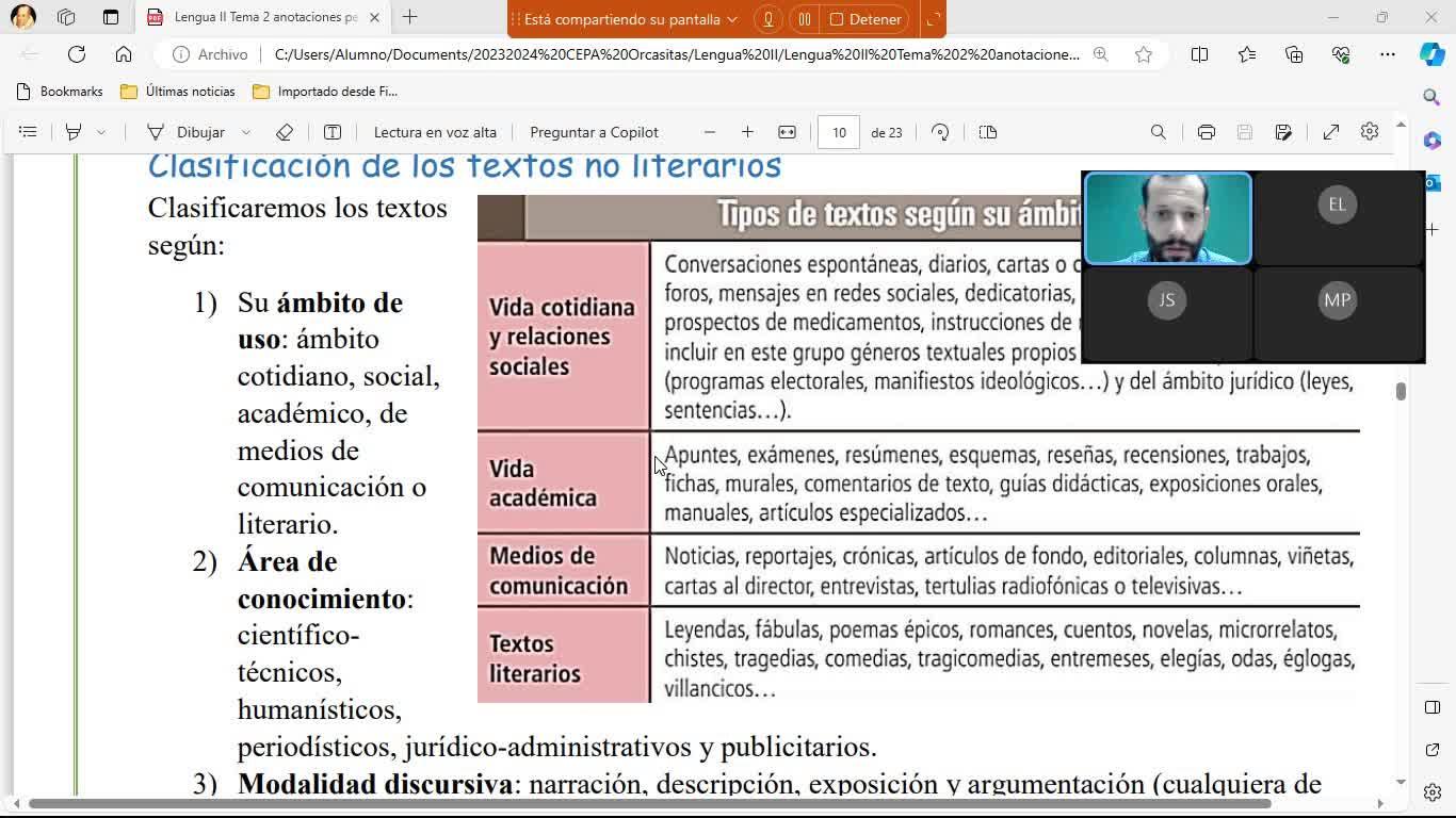 Vuelvo a decirlo porque esto es una parte de lo que tenemos que ver bastante confusa. Clasificar un texto no es fácil, ¿vale? Entonces, volvemos a repetir, ¿vale? Lo vuelvo a leer aunque emplee otros dos minutos.