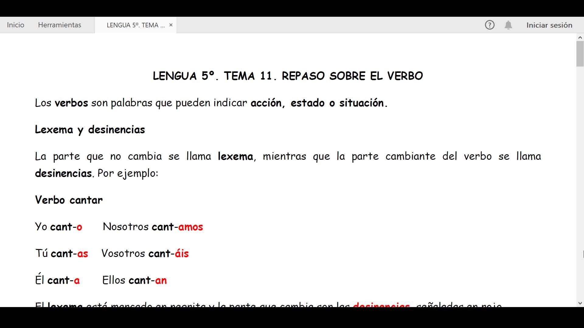 LENGUA 5º. REPASO SOBRE EL VERBO