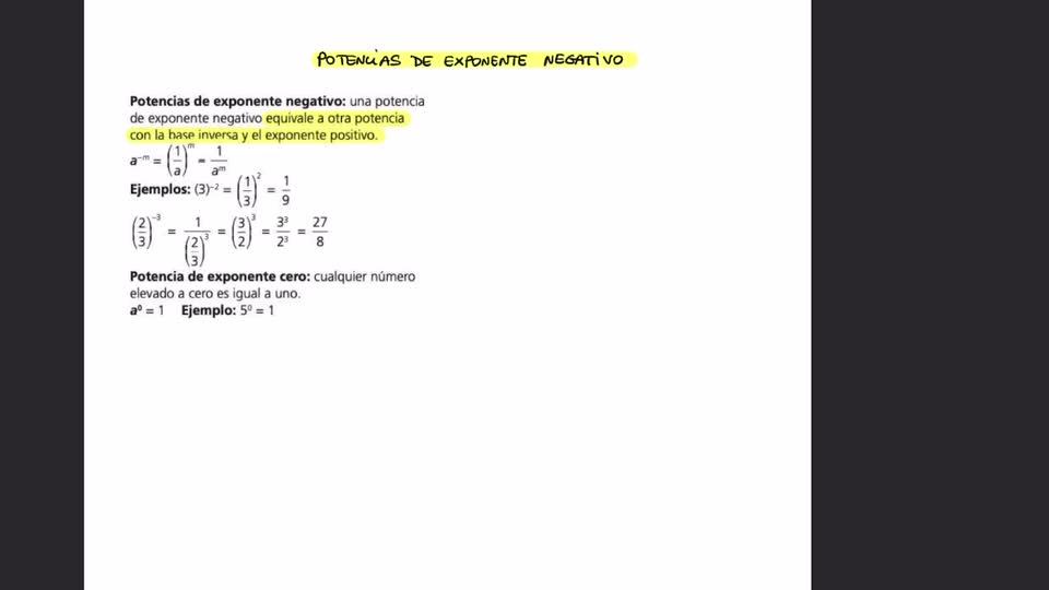 Potencias de exponente negativo - Contenido educativo