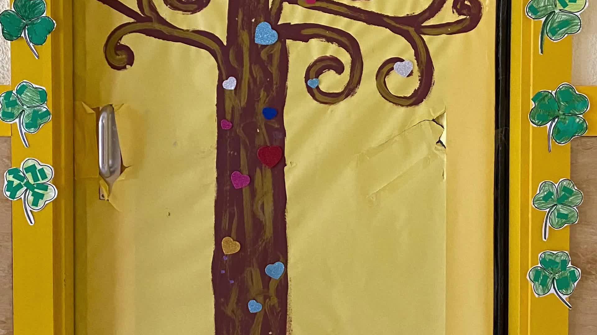 Celebración del Día de San Patricio en el patio del colegio; danzando con música irlandesa.
